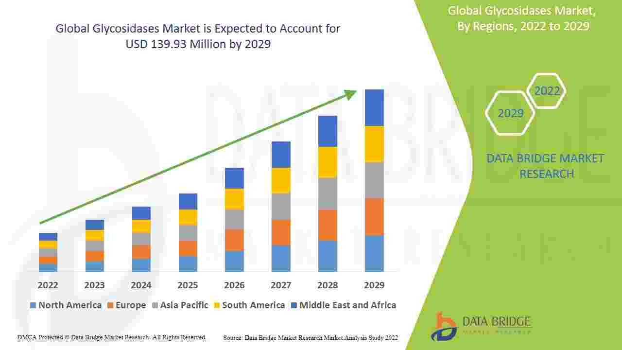 Data Bridge Market Research analyses that the glycosidases market is expected to reach the value of USD 139.93 million by the year 2029, at a CAGR of 11.3% during the forecast period.The Glycosidases Market Market report offers an analytical assessment of the prime challenges faced by the Glycosidases Market Market industry currently and in the coming years, with which market participants can know the problems they may face while operating in this market over a longer period of time. This Glycosidases Market Market report has a chapter on the Global Glycosidases Market Market and all its associated companies with their profiles, which provides valuable data related to their outlook in terms of finances, product portfolios, investment plans, and marketing and business strategies. By providing trustworthy market research information, this Glycosidases Market Market report helps to extend your reach to the success in your business.