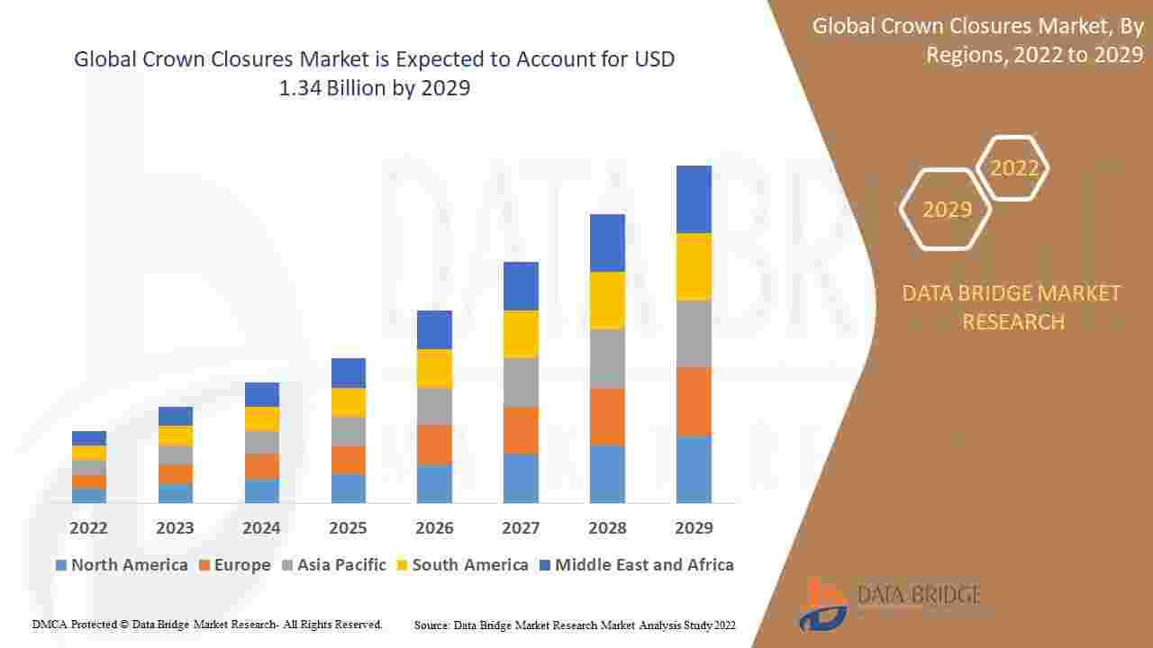 Global crown closures market was valued at USD 1.10 billion in 2021 and is expected to reach USD 1.34 billion by 2029, registering a CAGR of 2.45% during the forecast period of 2022-2029.