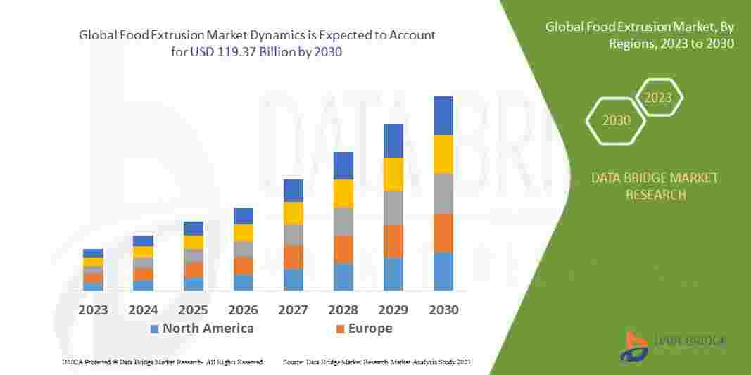 Data Bridge Market Research analyses that the food extrusion market is expected to reach USD 119.37 billion by 2030, which was USD 77.19 billion in 2022, registering a CAGR of 5.60% during the forecast period of 2023 to 2030.